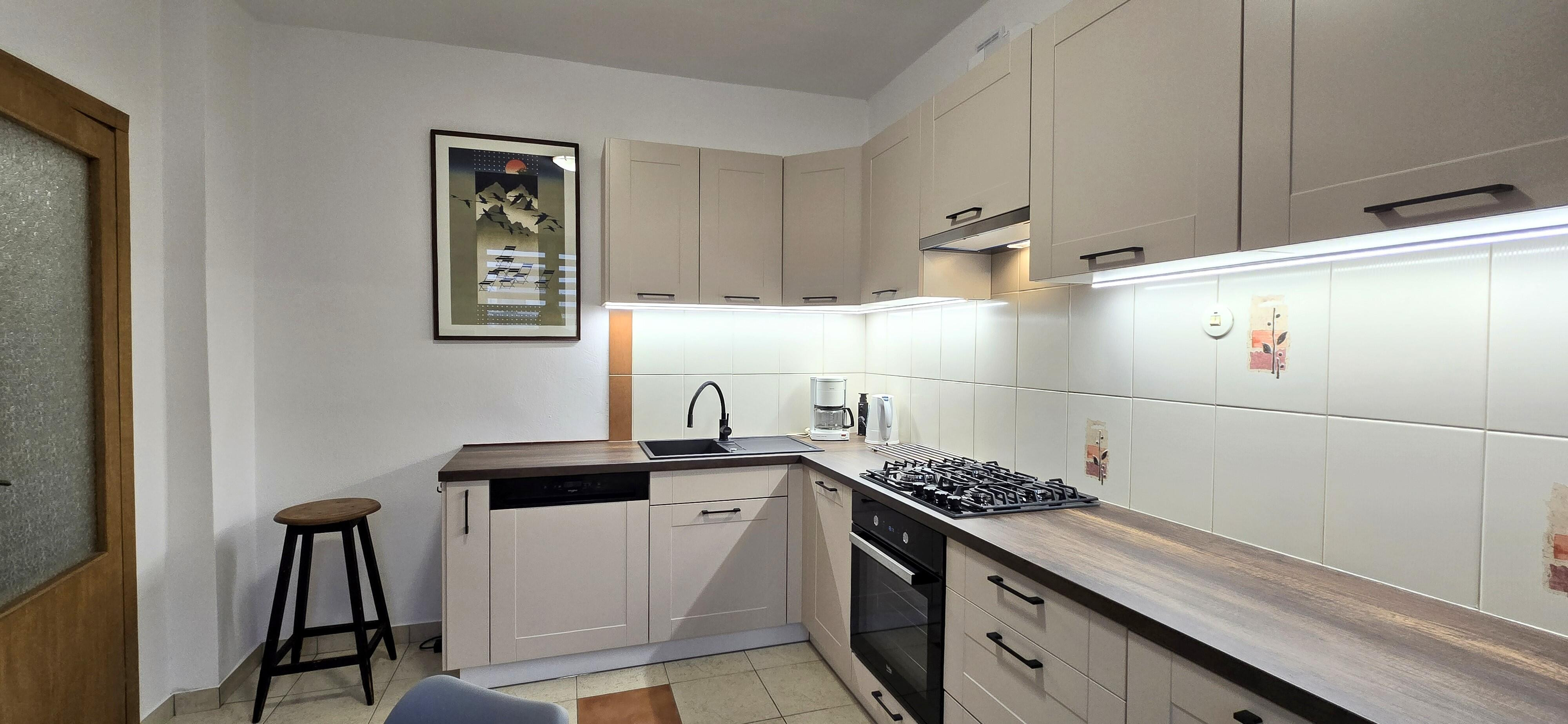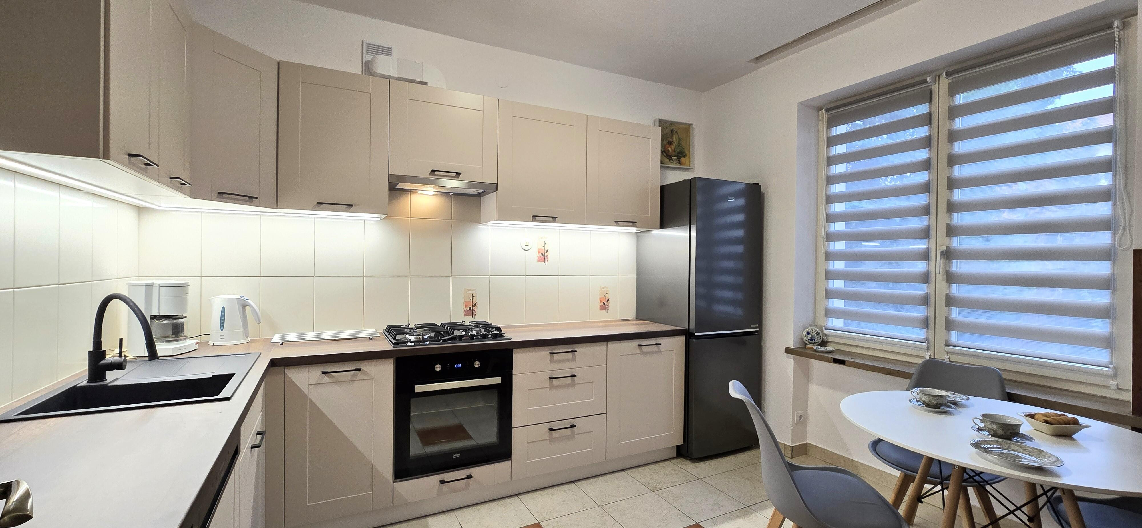 Widna, osobna kuchnia (10 m²) - po generalnym remoncie, wyposażona w nowoczesne meble w zabudowie, sprzęt AGD, w tym zmywarkę i płytę gazową,