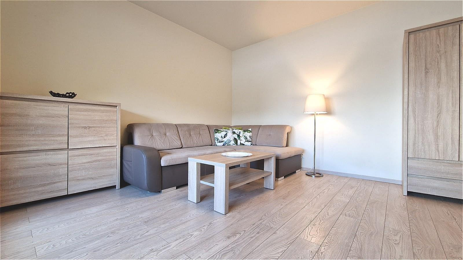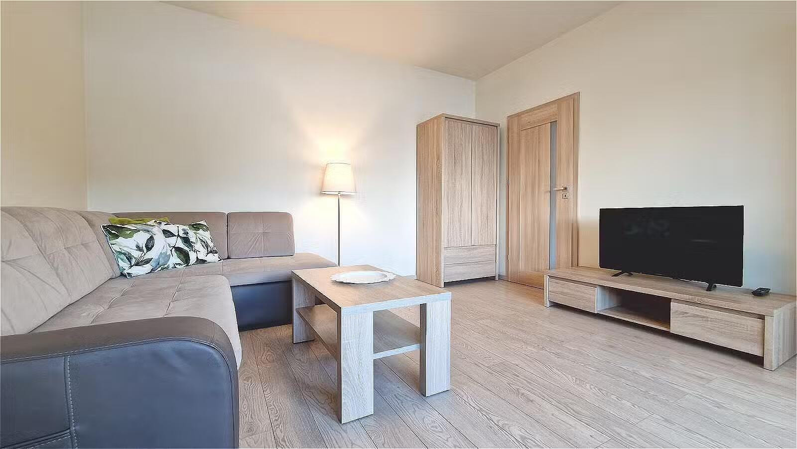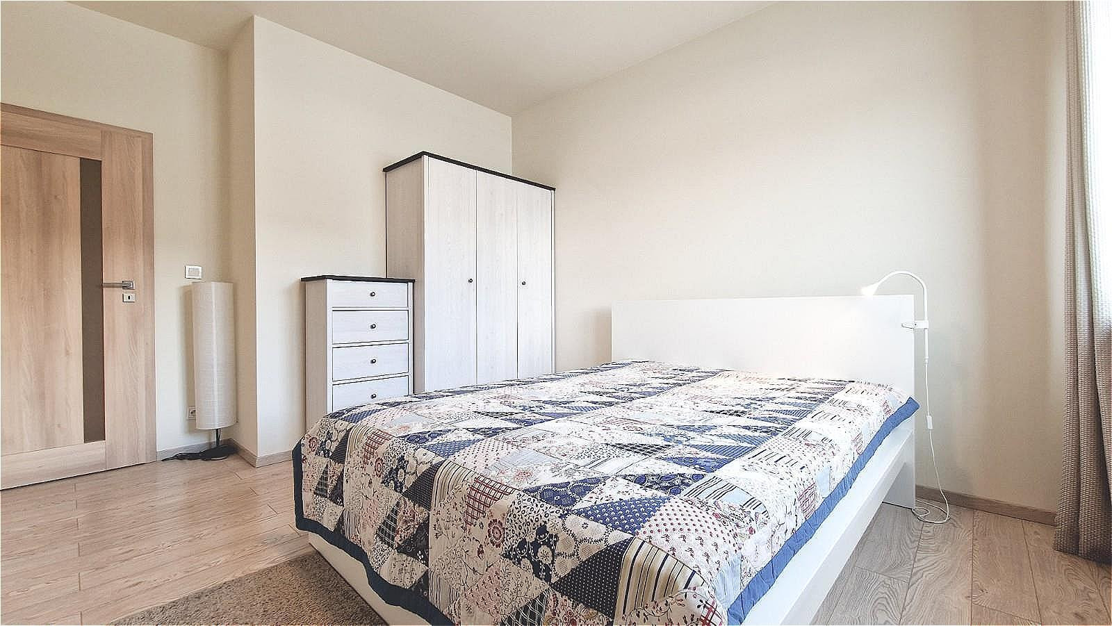 Umeblowane i kompletnie wyposażone, sprzęt AGD: pralka, lodówko-zamrażarka, piekarnik, zmywarka. W przedpokoju sypialni, pokoju dziennym szafy.