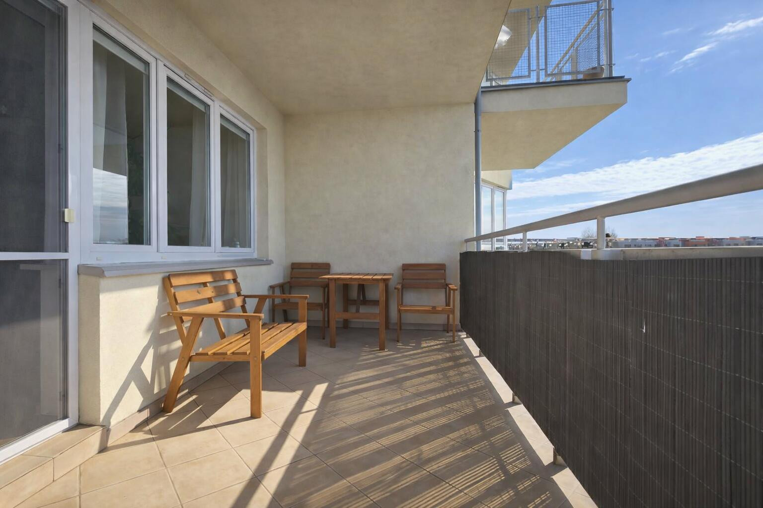 duży, dobrze nasłoneczniony balkon od strony południowej, umożliwiający aranżację strefy wypoczynkowej.